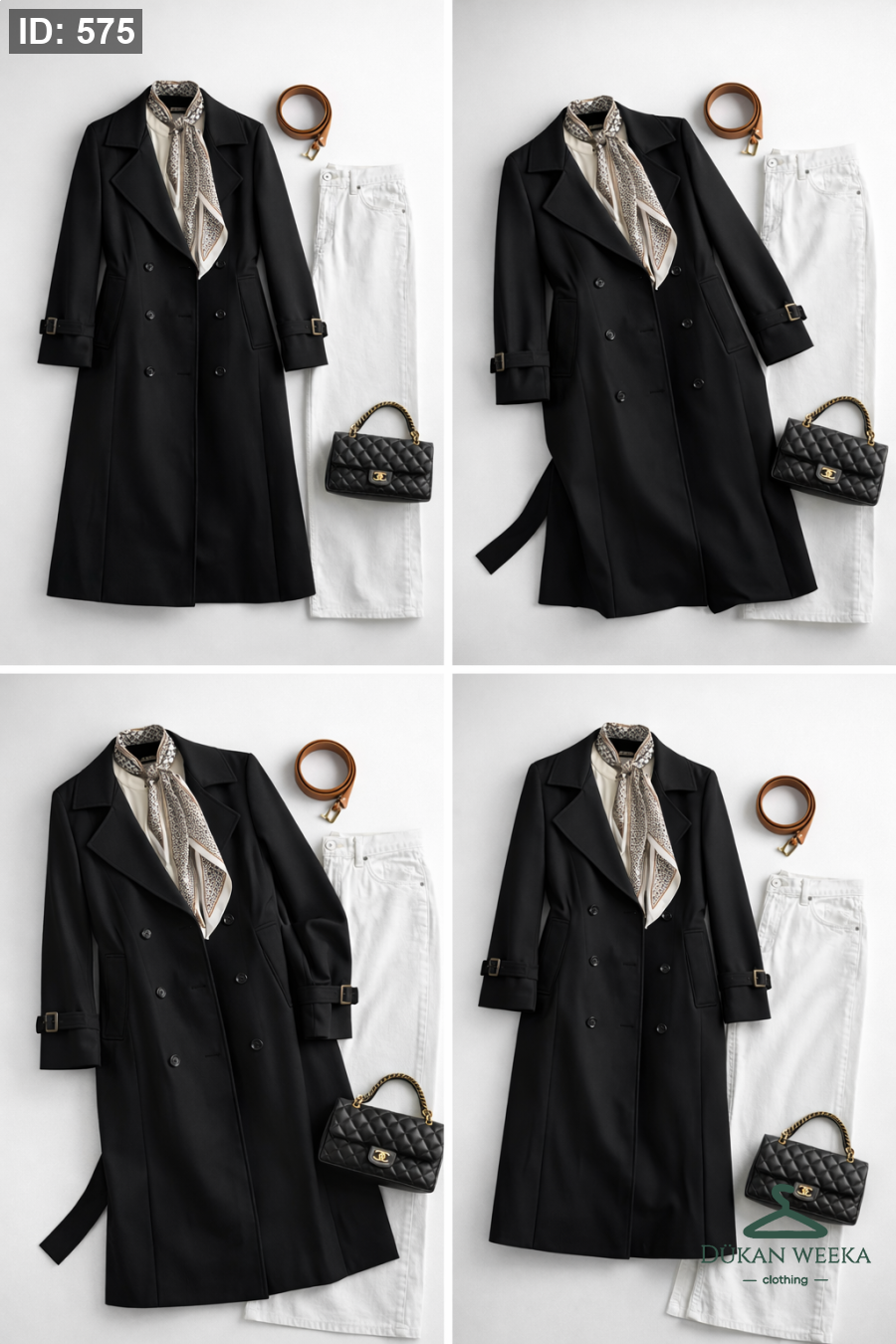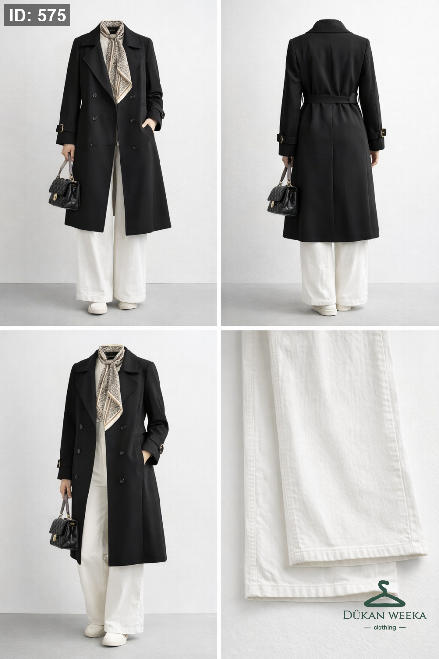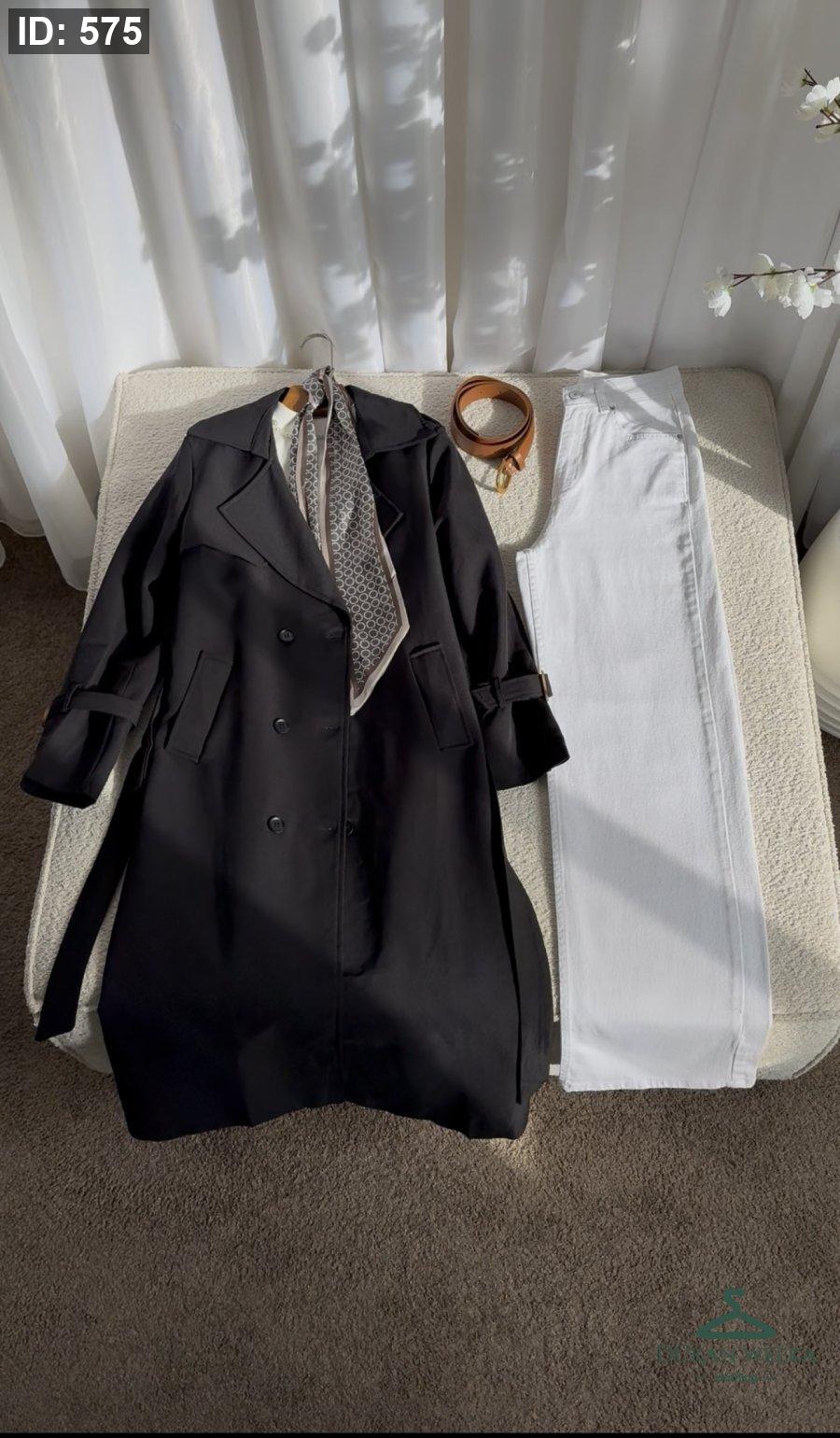 تنسيقة ترانش كتان +بلوز اصبع+بنطلون+سكارف