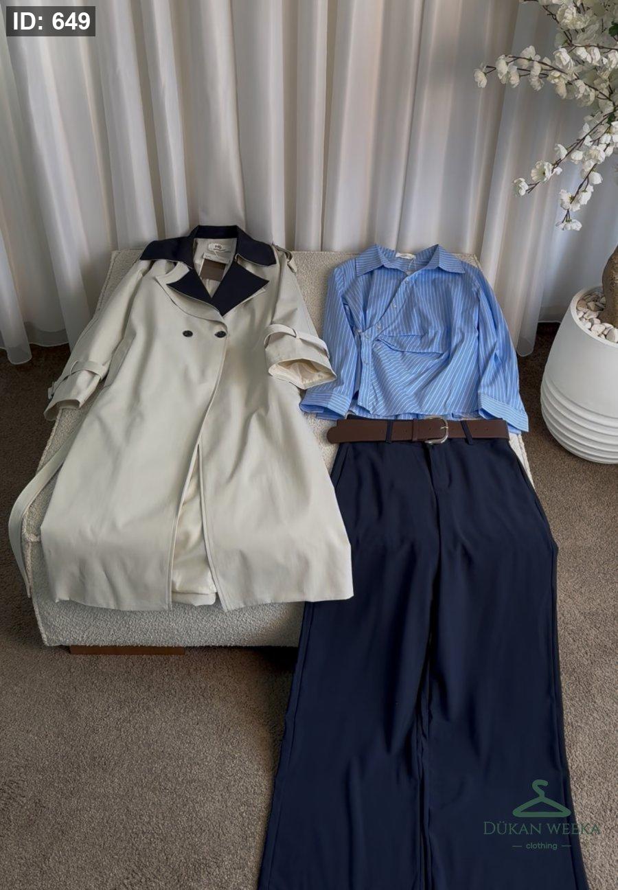 تنسيقة ويكا ترنش قبة كحلية+قميص مخصر+بنطلون كوري